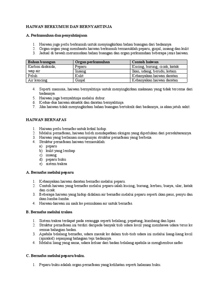 Burung adalah sejenis haiwan yang berbulu, berkaki dua, bersayap dan biasanya ianya boleh terbang. Haiwan darat adalah haiwan yang hidup dan tinggal di darat. Setiap makhluk hidup pasti bernafas, begitu juga halnya dengan hewan. Haiwan ini biasanya boleh hidup di darat dan di air. Cacing bernapas melalui oksigen yang masuk melalui permukaan kulitnya yang basah. Bernafas melalui kulit yang lembapbernafas melalui kulit yang lembap 1. · hampir semua haiwan yang hidup di dalam air(haiwan akuatik) bernafas melalui insang. Ada haiwan yang bernafas melalui spirakel, kulit lembap dan insang. § biasanya bertelur dan telur bercangkerang keras. Haiwan yang tinggal di darat biasanya bernafas menggunakan peparu. Apakah haiwan tersebut ?organ pernafasan haiwan terbahagi kepada empat jenis iaitu : Haiwan yang tinggal di dalam air biasanya bernafas melalui insang. Setiap haiwan di dunia mempunyai alat ataupun kelebihan survival yang dianugerahkan oleh tuhan.