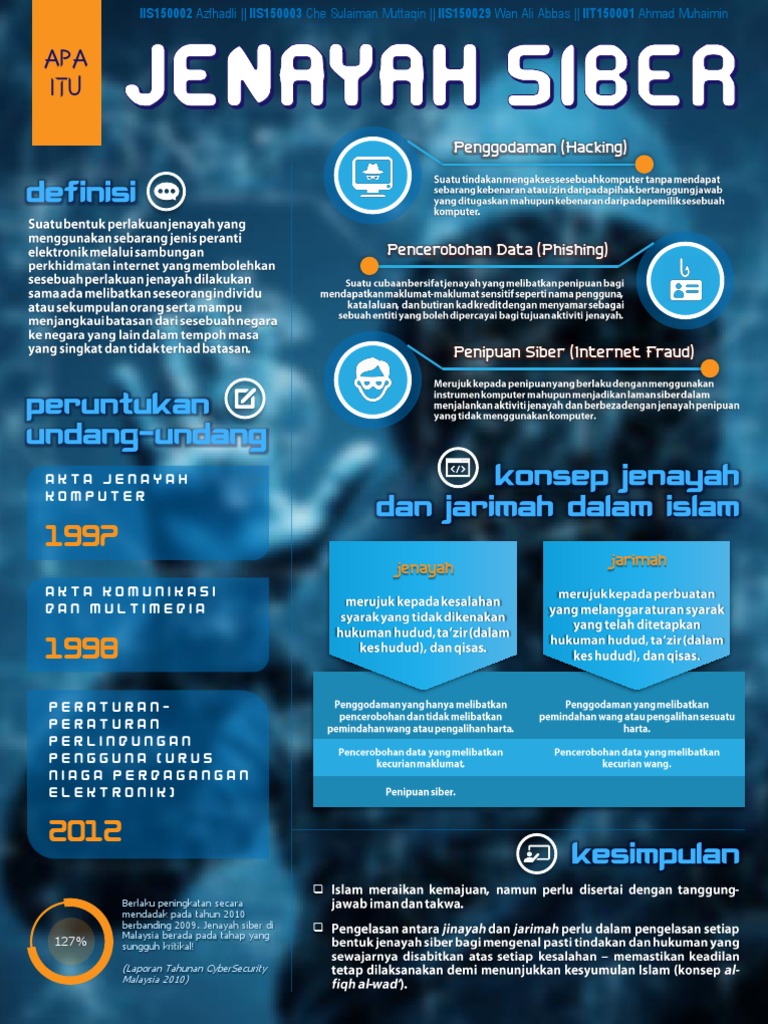 Jenayah siber merupakan jenayah komputer yang baharu pada abad ini. 0%0% found this document useful, mark this document as useful. O isu perhimpunan agung umno 2006. See more of penyiasat khas jenayah malaysia siber on facebook. Jenayah siber merujuk kepada perlakuan jenayah yang dilakukan menggunakan komputer dalam talian internet. Savesave jenayah siber di malaysia for later. Katanya, kegiatan jenayah siber ini masih lagi berleluasa dan membimbangkan kerana membabitkan kerugian kepada mangsa berjuta ringgit. Disebabkan itu, peningkatan 6 kadar jenayah penipuan cinta siber dianggap sebagai fenomena biasa dek kerana perkembangan mendadak pengguna yang. Anita abdul rahim & nazura abdul manap. Pemalsuan identiti profil menerusi saluran media sosial oleh penjenayah bagi menjalinkan hubungan cinta kepada pengguna semakin sukar dibendung. Jenayah siber ditakrifkan sebagai jenayah di mana komputer merupakan objek jenayah (godam, spam) atau digunakan sebagai alat untuk melakukan suatu kesalahan.penjenayah siber boleh menggunakan teknologi komputer untuk mengakses maklumat peribadi, rahsia perdagangan, atau. Punca berlaku jenayah siber jenayah siber di malaysia isu semasa jenayah siber merujuk kepada penyalahgunaan peralatan komputer bagi merosakkan, mencuri, atau mengubah data dalam komputer bagi tujuan tertentu. Persatuan pengguna siber malaysia atau malaysia cyber consumer association (mcca) ditubuhkan secara rasmi pada 08 oktober 2018 dibawah jabatan pendaftaran jenayah siber melibatkan dunia siber dan biasanya berlaku di atas talian manakala jenayah biasa selalunya melibatkan fizikal.